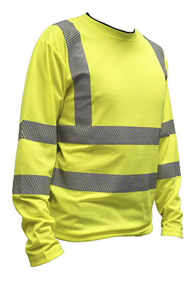 Pitkähihainen t-paita hengittävästä materiaalista, jossa kosteus siirtyy pois iholta pitäen paidan miellyttävän tuntuisena. Kauluksessa tuplaneulos kontrastivärillä. Painetut 50mm raitaheijastimet.