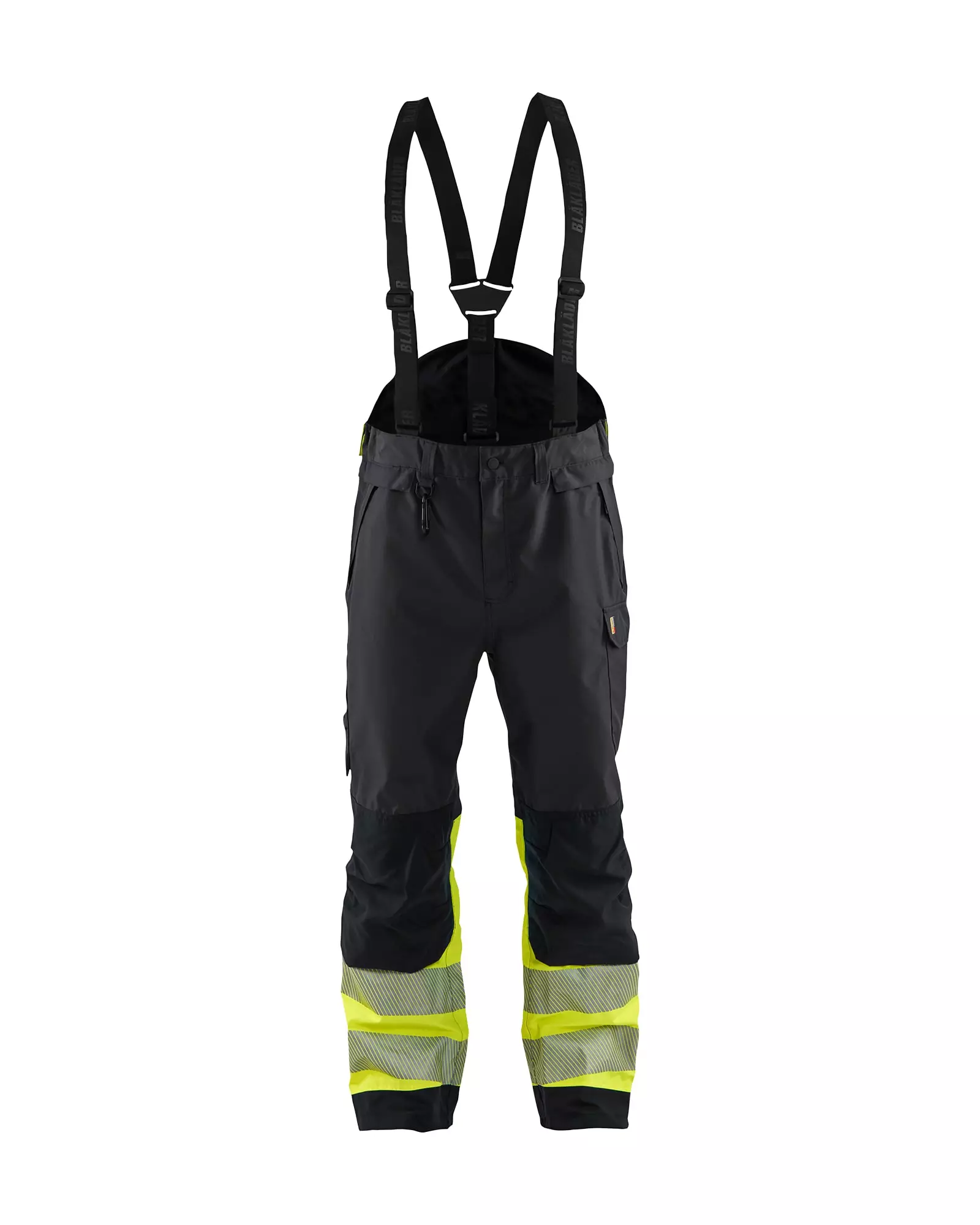 Kevyesti vuoratut huomiovärilliset kuorihousut lk.1, teipatuilla saumoilla, jotka suojaavat kylmältä, tuulelta ja sateelta. Joustavat ja irrotettavat henkselit, joustava vyötärö, polvisuojataskut ulkopuolella, velcro vasaranpidike ja lumilukot. Irralliset riipputaskut 2170 voidaan lisätä ja myydään erikseen. Housut saatavilla kolmessa eri pituudessa. Esim. Koko L: LS=lyhyt -4, L=XXcm, LT=pitkä +4
