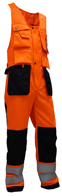 Haalarista löytyy paljon taskuja työkaluille sekä puhelimelle. Työmukavuuden takaa polvisuojataskut sekä joustava selkäosa. Ominaisuuksista löydät myös mittataskun, vasaralenkin sekä taskun henkilökortille. Haalari on kestävää, vettä ja likaa hylkivää sekoitekangasta. Leveät 70 mm heijastimet lisäävät näkyvyyttä ja turvallisuutta.