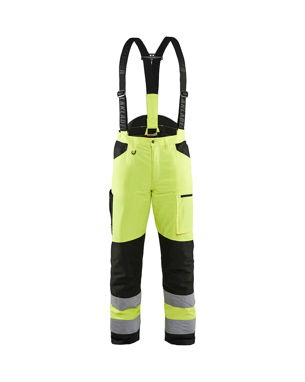 Varoitusviiltosuojahousut joustavilla stretch-osioilla.