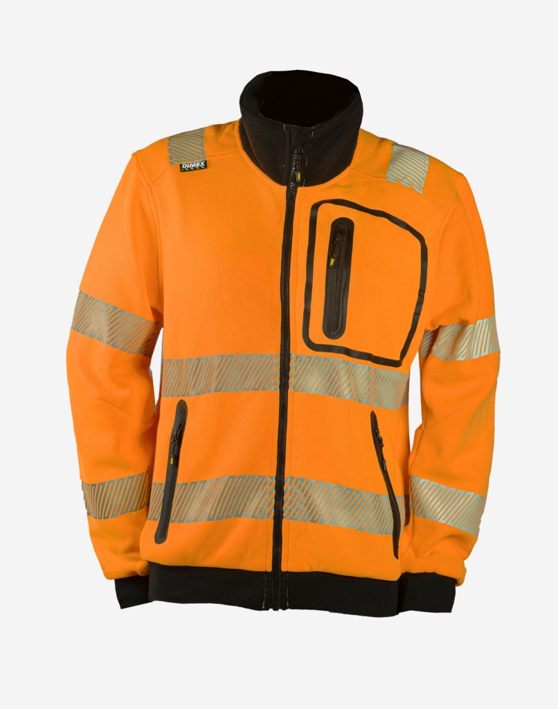 Vetoketjullinen varoitustakki painetuilla heijastimilla. Vetoketjullinen rintatasku, D-lenkki, vetoketjulliset alataskut ja avoimet sisätaskut. Helmassa ja hihansuissa mustat resorit, olalla painetut heijastimet.