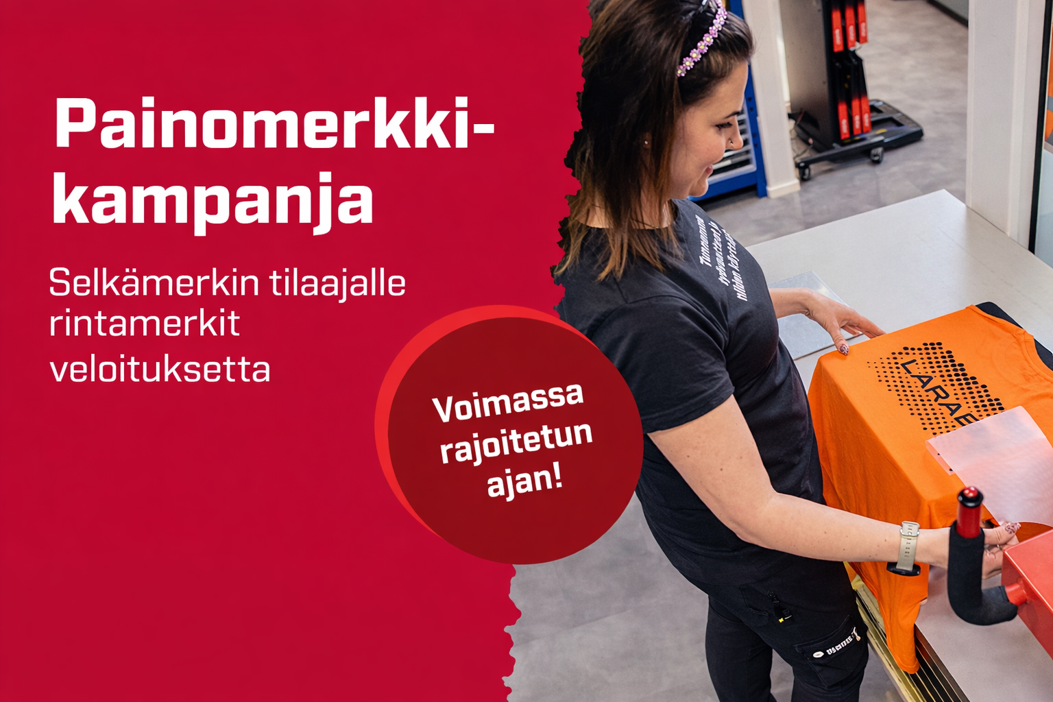 Tarjous koskee vain uusien painomerkkien tilauksia. Minimitilausmäärä 50 kpl.
