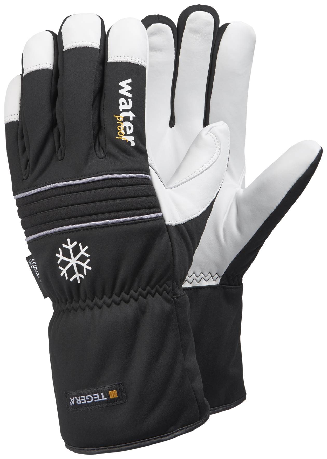 Veden- ja tuulenpitävä työkäsine, jossa on lämmin vuori. Käsineen kämmen on joustavaa naudan pintanahkaa, ja kämmenselkä on polyesteriä.
