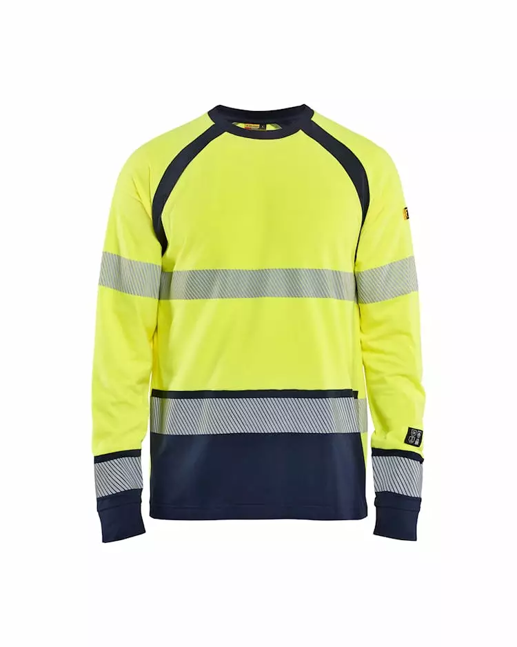 Palosuojattu, pitkähihainen, huomiovärinen T-paita. Valmistettu pehmeästä, kevyestä luontaisesti palosuojatusta kankaasta, joka on hengittävä ja mukava käyttää, mutta tarjoaa silti erinomaiset suojausominaisuudet. Paidassa on katkonaiset heijastimet, jotka parantavat kankaan joustavuutta ja hengittävyyttä heijastavien kankaiden kohdalta.