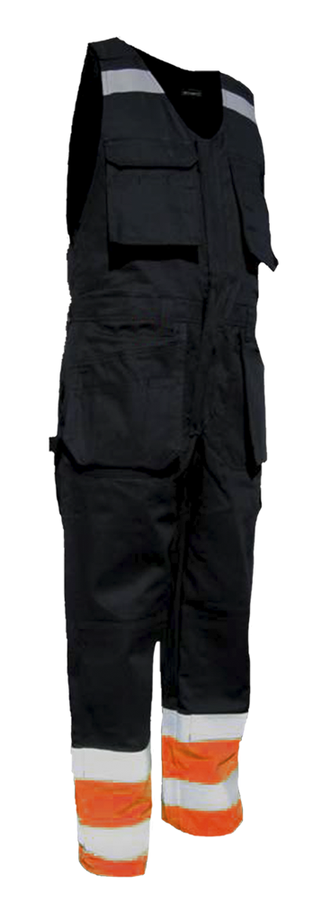 Kaksi riipputaskua rinnassa ja neljä vyötäröllä: kaksi edessä ja kaksi takana. Takataskut, mittatasku, vasaralenkki, reisitasku ja polvisuojataskut. Vetoketju suojassa etulistan alla. 50 mm heijastimet hartioissa ja lahkeissa parantavat näkyvyyttä entisestään.