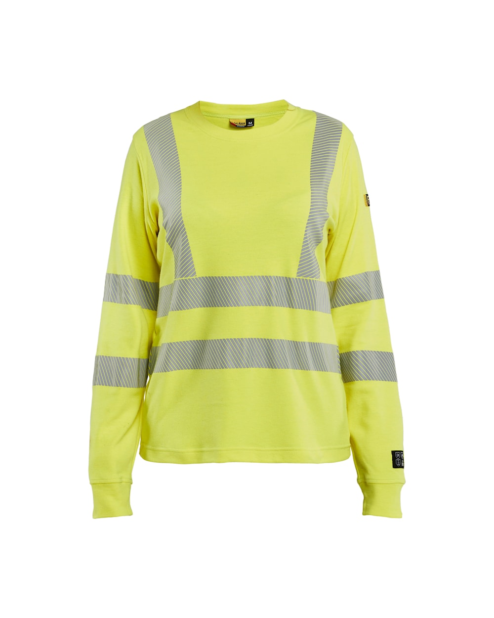 Pitkähihainen huomiovärinen t-paita, joka on palosuojattu ja siinä on katkonaiset heijastimet. Naisten istuvuus, pyöristetty pääntie, vahvistetut saumat olkapäissä ja niskassa.