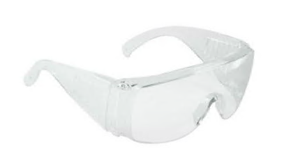 Suojalasit silmälasien päälle suojaksi tai vierailijoille silmien suojaksi.Kirkkaasta polykarbonaatista valmistetut lasit suojaavat pieniltä hiukkasilta.