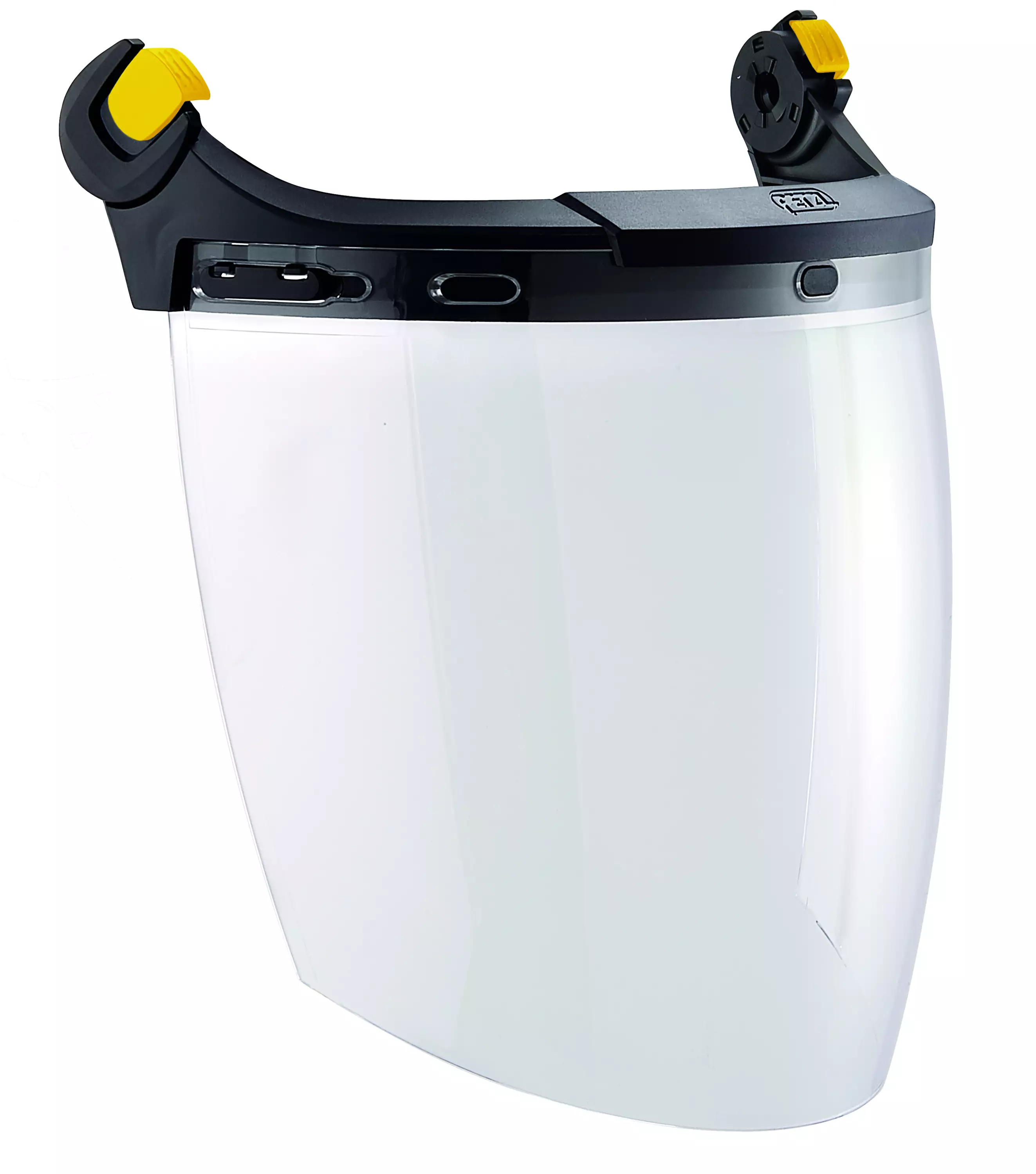 Pikairrotettava kirkas kokokasvosuojain Petzlin Strato ja Vertex New työkypäriin. Visiirissä on naarmuuntumisenesto- ja huurtumisenestopinnoite. Suunniteltu pitkäaikaiseen yhtäjaksoiseenkin käyttöön rasittamatta silmiä. Kaksi asentoa: nostettuna kypärän päälle kuljetusasentoon sekä laskettuna alas kasvojen eteen työasentoon. Mukana toimitetaan EasyClip pikakiinnitysnastat, jotka vaihdetaan kypärän sivuilla olevien mustien vakiopalojen tilalle. Irroitus tapahtuu työkaluvapaasti vain nappeja painamalla. Suojaa erinomaisesti koko kasvot mekaanisilta vaaroilta sekä oikosulun aiheuttamalta valokaarelta.