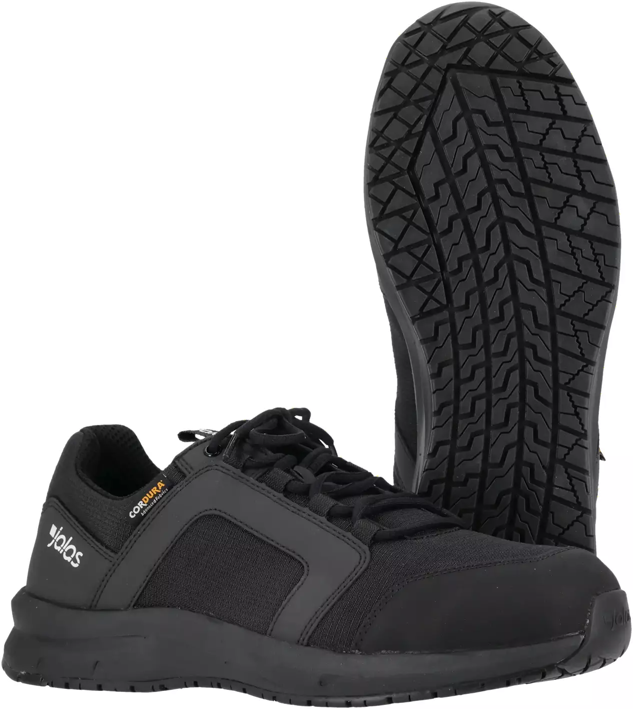 Tyylikäs kokomusta ja kevyt turvajalkine. Päällinen 100 % kierrätettyä Cordura® re/cor™ -polyesteriä, jossa on PFAS-vapaa vettähylkivä viimeistely. Tämä kestävä mutta hengittävä kangas pitää jalat mukavan tuntuisina ja kuivina kevyesti kosteissa ympäristöissä. Poron® XRD® -pohjallinen tarjoaa edistyksellisen iskunvaimennuksen, kun taas EVA-/nitriiliulkopohja takaa pidon ja hyvän liukastumisen eston. Ominaisuuksiin kuuluvat metallinen varvassuoja, pehmeä naulaanastumissuoja ja ESD-hyväksyntä.