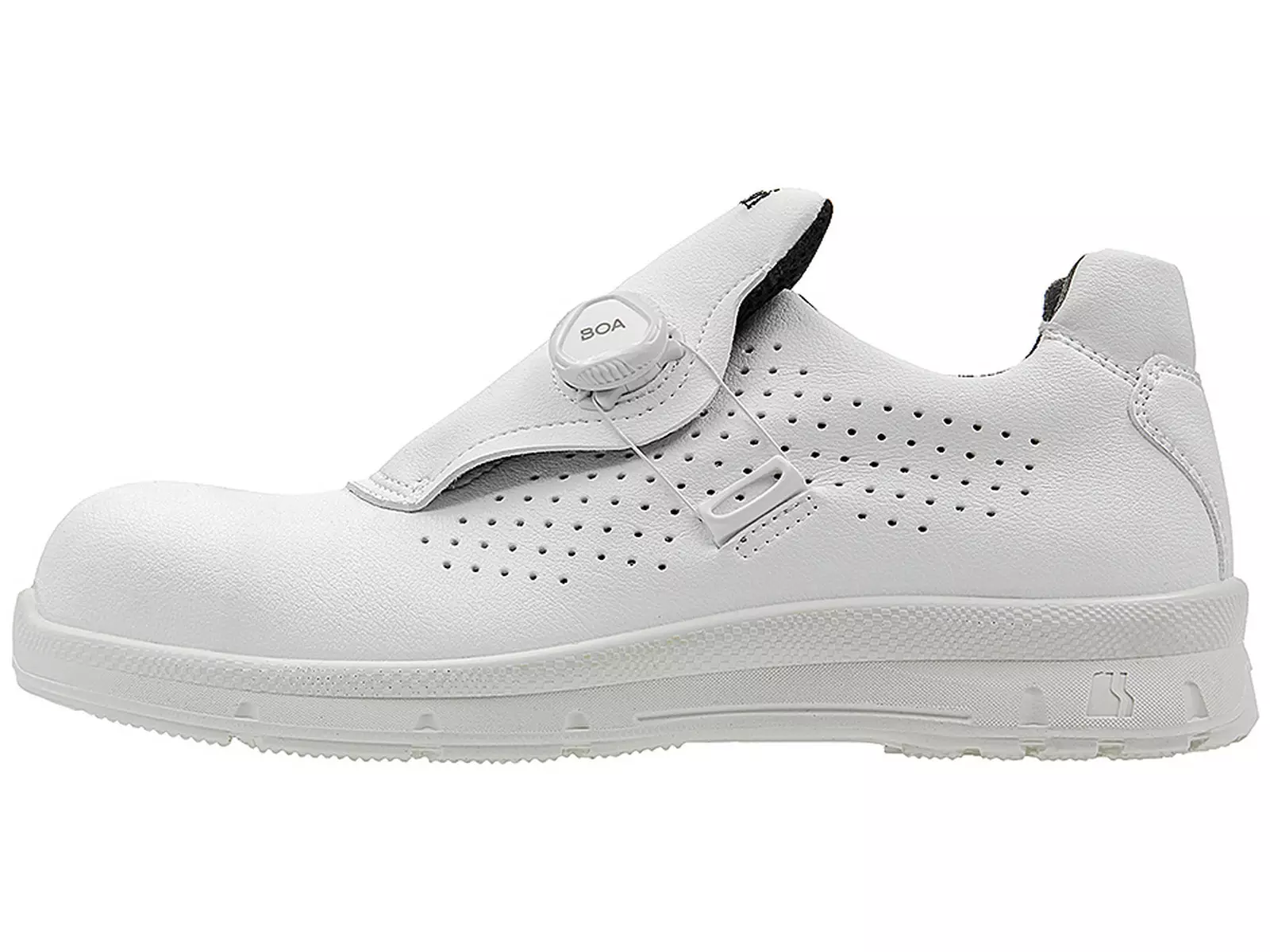 BOA® Fit System -kiinnitysmekanismillä varustettu valkoinen turvajalkine.