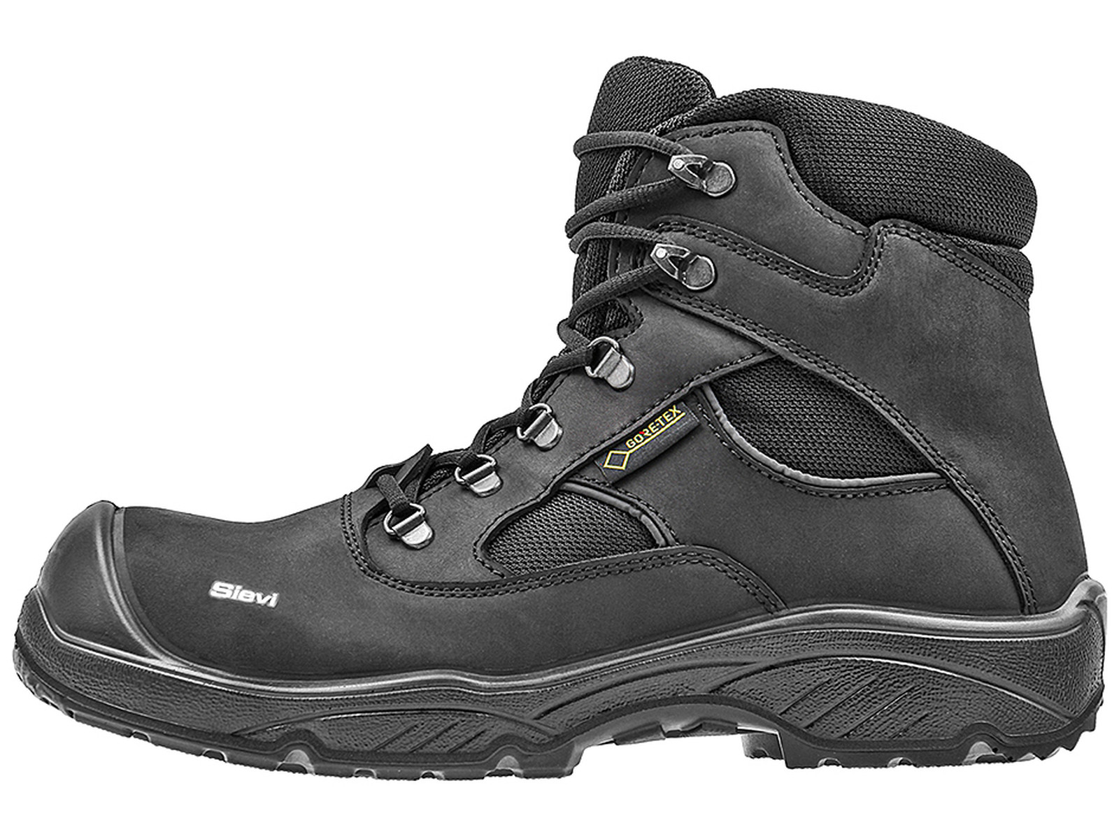 Nilkkurimallinen turvajalkine tilavalla lestillä. Jalkineessa on komposiittinen turvakärki ja teräksinen naulaanastumissuoja. Ulkopinta on vettähylkivää PU-nahkaa ja vuori on GORE-TEX® -materiaalia, joten jalat pysyvät kuivana kosteassa ympäristössä. Ulkopohja on sekä öljyä että kuumuutta kestävä.