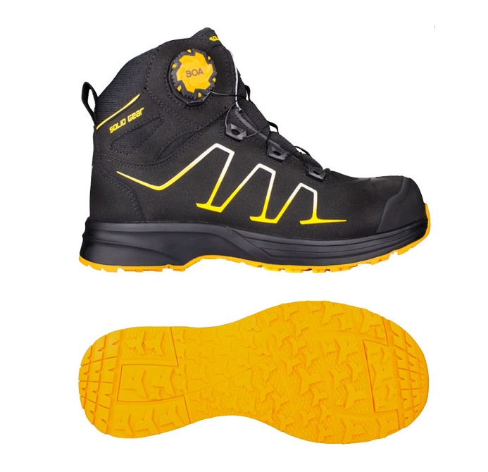 Tässä korkeavartisessa jalkineessa on yhdistelmä hengittävyyttä ja iskunvaimennusta. Tämä onnistuu yhdistämällä TPU-vahvikkeella varustettu mikrokuitupäällinen ja erittäin hyvin vaimentava PU-välipohja. Valettu PU-välipohja yhdessä kumipohjan kanssa antavat erittäin kevyen ja mukavan tuntuman. BOA® Fit -kiristysjärjestelmä helpottaa jalkaanlaittoa ja parantaa istuvuutta. Jalkineessa on metalliton varvassuoja ja naulaanastumissuoja. Standardin BS EN 61340-4-3: 2002 mukainen ESD-toiminto.