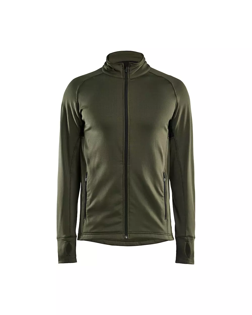 Fleecetakki, joka toimii täydellisesti välikerroksena talvipukeutumisessa. Kestävä, vartalonmyötäinen, 4-suuntaan joustava materiaali, jonka sisäpuolella on ruutukuvioilla kanavia, jotka antavat takille täydelliset eristys-, tuuletus- ja kosteudenhallintaominaisuudet. Takki on vartalonmyötäinen ja kainaloissa on mesh-materiaalia parantamaan ilmankiertoa. Peukaloaukot hihansuissa ja kaksi sivutaskua.