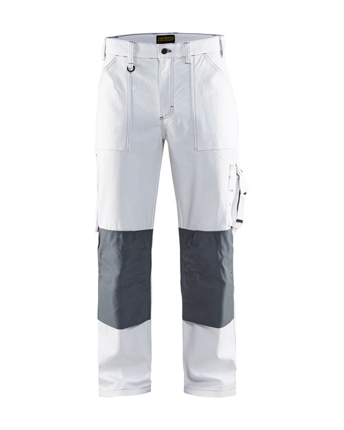 Kestävät maalarin housut, joissa on Cordura vahvistetut polvisuojat- ja takataskut. Valmistettu imukykyisestä materiaalista, joka ei päästä maalia valumaan läpi iholle.