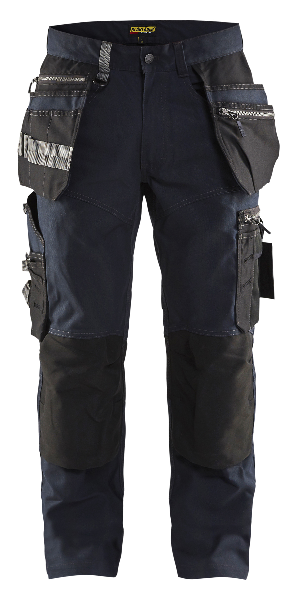 Toiminnalliset ja mukavat riipputaskuhousut, jotka on valmistettu kestävästä canvas-kankaasta, joka on myös pehmeää ja hengittävää. Housuissa on Cordura-vahvistetut polvisuojataskut. Monipuoliset taskut ja yksityiskohdat, kuten irrotettava ID-tasku ja heijastavat nauhat pohkeissa.