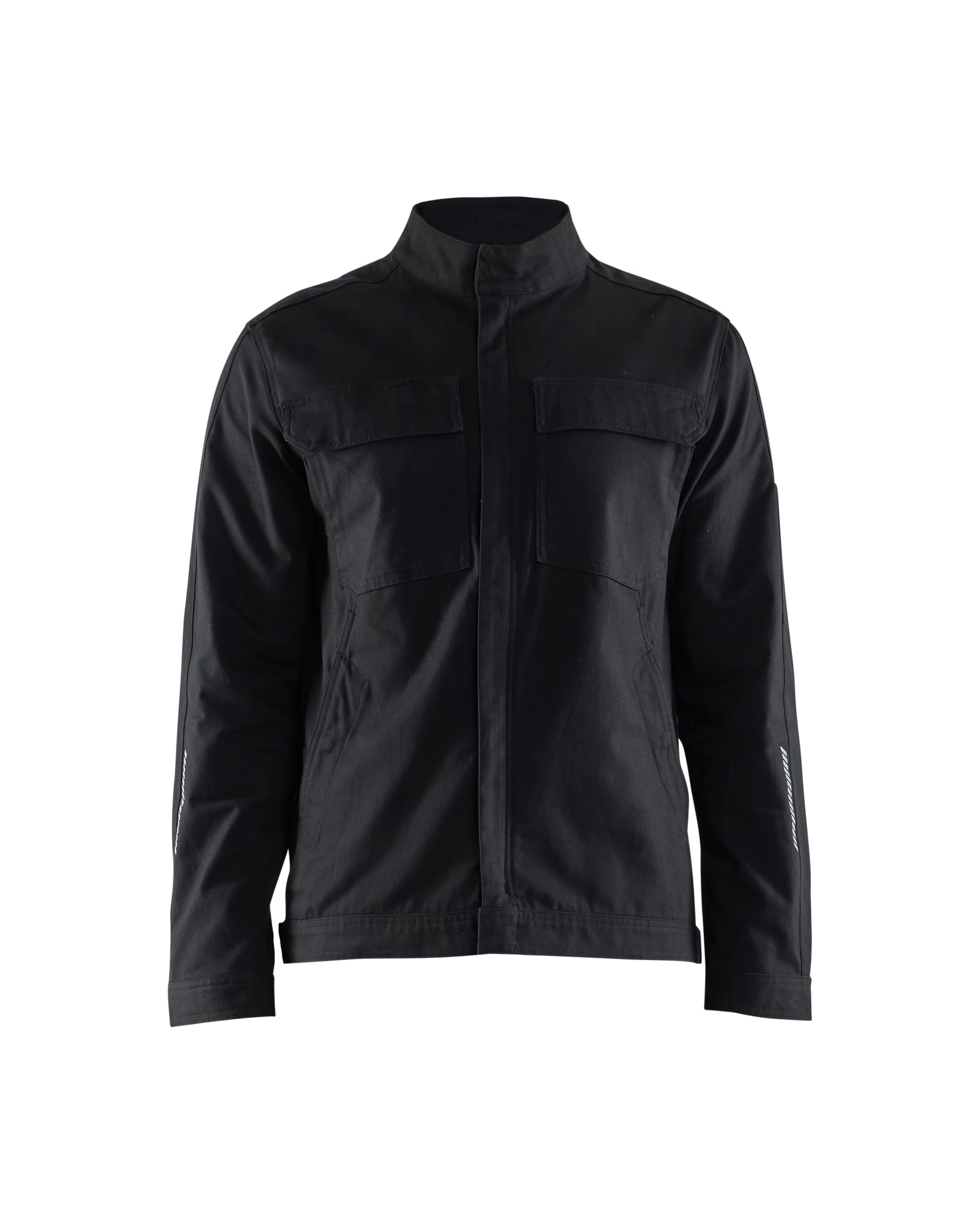 Tämä teollisuuspesua kestävä, naarmuuntumaton takki on valmistettu mukavasta, kahteen suuntaan joustavasta puvillamateriaalista. Takissa on heijastavia yksityiskohtia.Säädettävät hihansuut piilotetuilla metallisilla napeilla